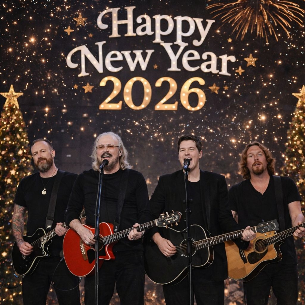 Standing beside him were his sons Steve Gibb and Ashley Gibb, joined by his nephew Robin John Gibb. Four voices, connected by blood, memory, and music, prepared to welcome 2026 together. What followed was not just a performance, but a moment of continuity — one that quietly carried the spirit of the Bee Gees forward.
